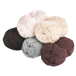 4ply 90% acrylic wool in an assortment of five warm colours: red, orange, yellow, violet and dusty pink. Each roll is approx. 90m long.