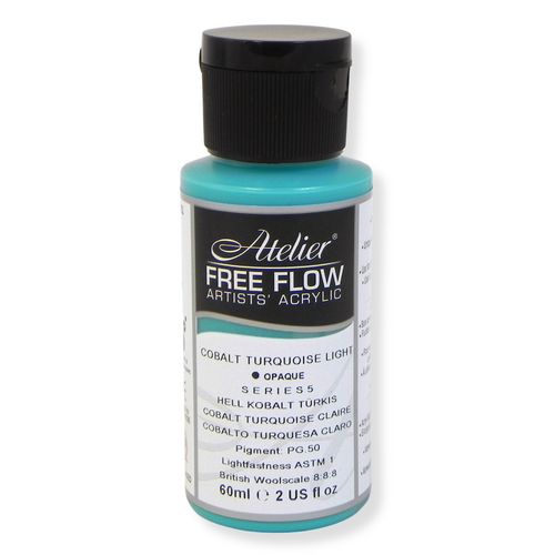 Atelier Free Flow utilizes the latest advances in pigment and polymer technology, making Atelier Free Flow the most fluid and vivid artists’ acrylic in the world. It can be used as a standalone acrylic paint or incorporated with a heavy bodied acrylic such as Atelier Interactive. This combination of consistencies will add more contrast and texture to your work.