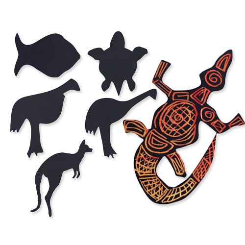 The included Scratch Australian Animal shapes are kangaroo, emu, turtle, crocodile, and fish.This class pack includes five designs (6 of each) and 30 wooden scratch tools