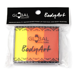 Global Colours’ NEW Brightest Tiger Split Cake was designed by an award-winning face painter to help you create the perfect super-fast tiger base that pops. By positioning your sponge over different parts of the split cake, you can create the base, cheek contours, highlights and eyesocket contrast, all with one cake.