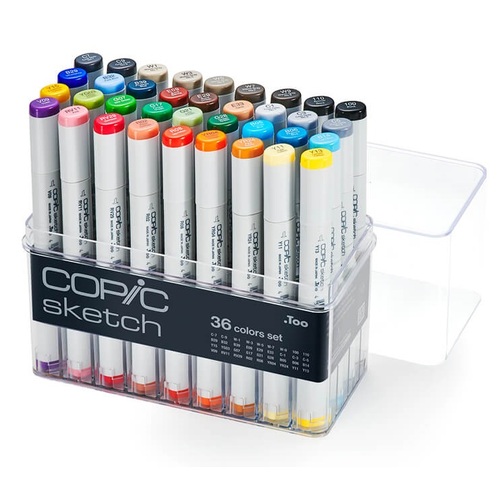 Copic Sketch, the ultimate flexible graphic marker and bestseller worldwide. Its iconic oval and double ended design features a Super Brush nib and a Medium Broad nib great for expressive strokes, building tone, blending colors, shading, finer details and lines, and large streak free coverage. Refillable, replaceable nibs, ultra blendable and made with the highest grade of expertly formulated alcohol and dye-based inks.