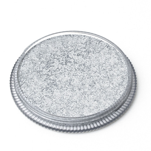 Global Colours’ Metallic Silver is a shiny, brilliant silver that provides stunning even coverage for silver bodypainted statues/armour, or for smaller designs such as 3D-realistic jewellery, or metallic accents on face painting and eye designs. Also looks stunning on the lips for avante-garde makeup looks.
