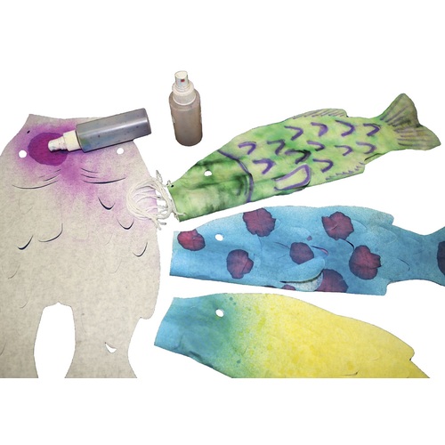 A fish shape made with diffusing paper, ideal for drawing and painting activities in art and language studies. 42cm long.