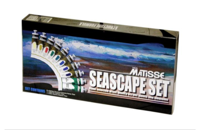 Comes with: Naples Yellow Light, Yellow Oxide, Brilliant Alizarin, Ultramarine Blue, Prussian Blue, Phthalo Blue, Southern Ocean Blue, Phthalo Green, Impasto and Gel Medium.