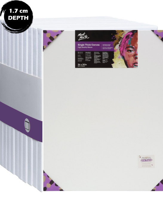 Mont Marte Single Thick Canvases feature an 18mm deep frame that is designed for framing. Triple coated with universal primer and ready to be painted on. This series is suitable for moderate application of paint. Great for students to professionals.