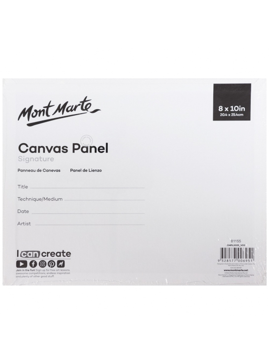 Mont Marte Canvas Panels offer an inexpensive painting support with the look of painting on canvas. Panels provide a sturdy, non-flexible surface and are great for painting outdoors as they are compact and easily transported. Canvas Panels are also less prone to damage than stretched canvases. Because of their sturdy construction they are also fantastic for collage techniques. Acrylic titanium primed and ready to be painted on, these Panels are suited for use by students through to professionals.