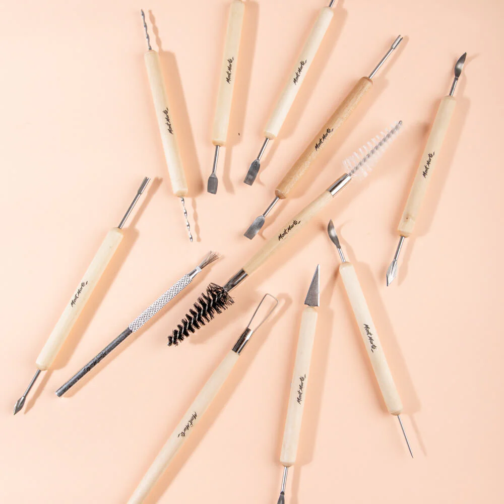 This set contains a fantastic variety of tools suitable for use with clay. They may be used while the clay is still moist or on green ware (unfired air dried clay) to carve, cut and clean. This clay tool set may also be used with polymer clay. Each tool is made from clear varnished hardwood handles with durable steel blades. There are infinite ways to use these tools. Below is a small selection of possibilities.