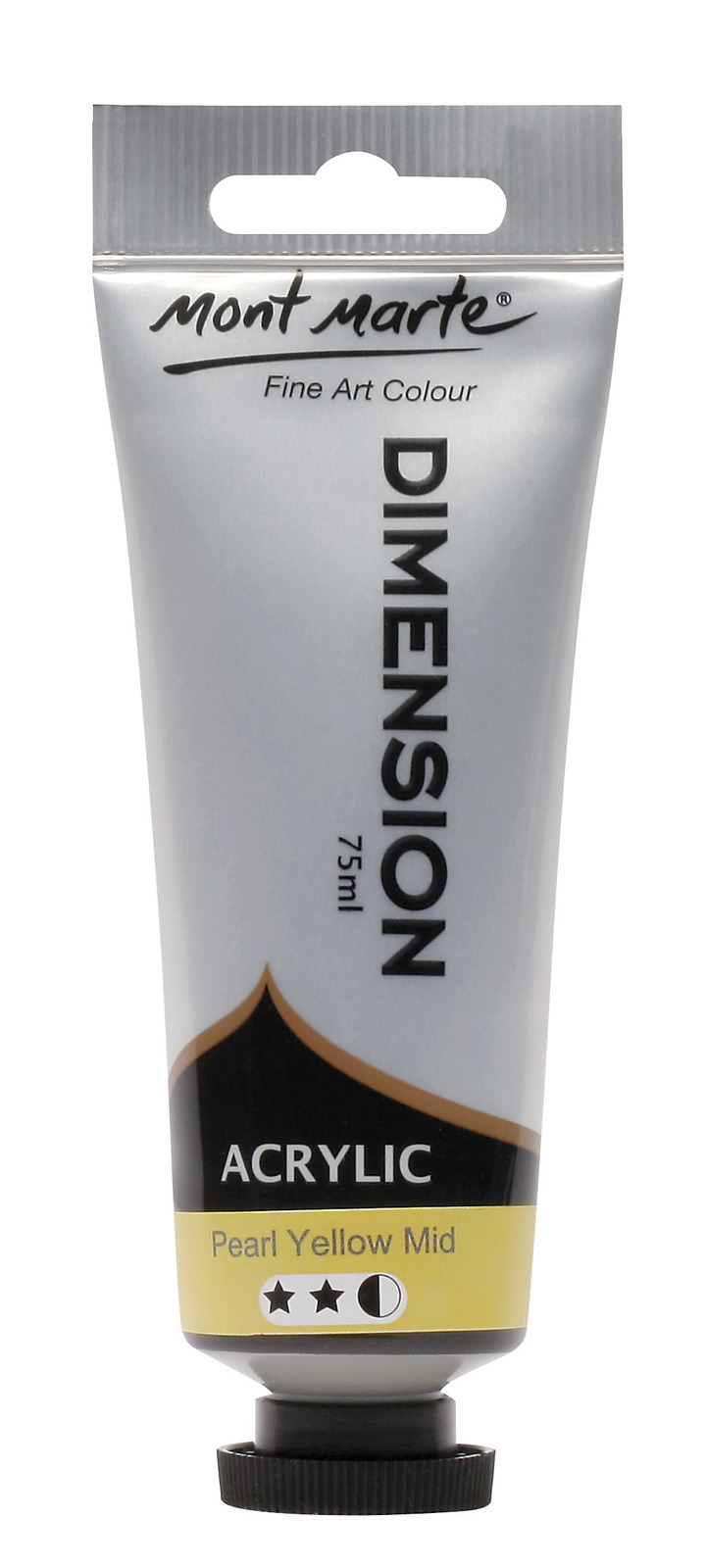 Mont Marte Dimension acrylic is a high viscosity fine art paint that offers artists a new dimension in painting. This acrylic's ultra thick consistency can be applied with brush, palette knife or shaper to create especially exaggerated texture effects. Dries hard and holds shape while still maintaining flexibility and smooth flow-ability. It can be diluted with water or acrylic mediums for glazing or watercolour techniques. With dilution, the pigment still holds strong colour intensity. Excellent lightfastness and premium quality pigment means colour strength will stay brilliant for longer. The DIMENSION series is available in a range of vivid colours which dry to a radiant gloss finish.