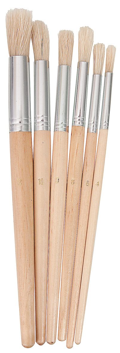 This bulk class pack contains short handle hog hair brushes, which are ideal for acrylic, poster and oil paint. The natural filaments are coarse enough to hold lots of paint whilst applying the paint smoothly. Use a damp brush to minimise brush strokes. Round brushes are great for line work and contours. 10 each of sizes 4, 6, 8, 9, 10 & 12.