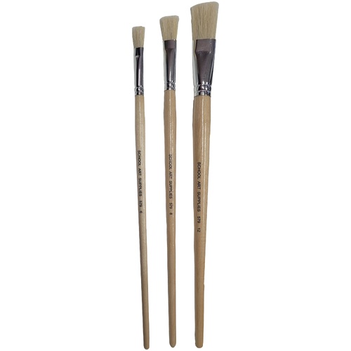 These new hog hair brushes from here at School Art Supplies are long-handled for excellent control, with polished wood and a metal ferrule. Comes in a pack of 12. Size 2. Round.