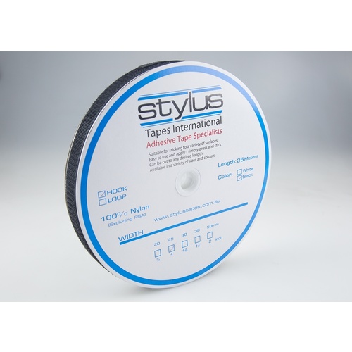 Stylus Self Adhesive Bulk Cut To Size Hook ONLY (Velcro) Black 25mm x 25m