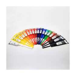 - 18 colours: Chinese White, Lemon Yellow, Yellow Mid, Yellow Ochre, Orange Yellow, Gamboge, Vermilion, Scarlet, Crimson, Prussian Blue, Viridian, Sap Green, Ultramarine Blue, Violet, Burnt Sienna, Lamp Black, Payne's Grey, Burnt Umber