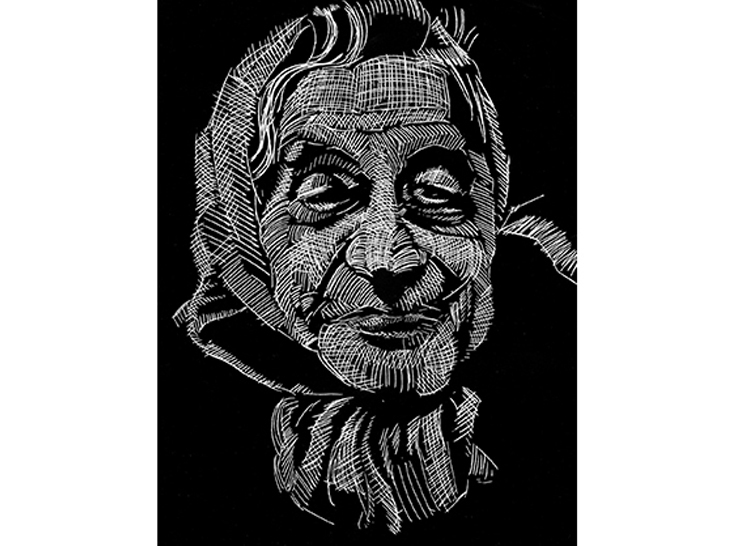 Scratch back lines with wooden tools to reveal white underneath the black coating.